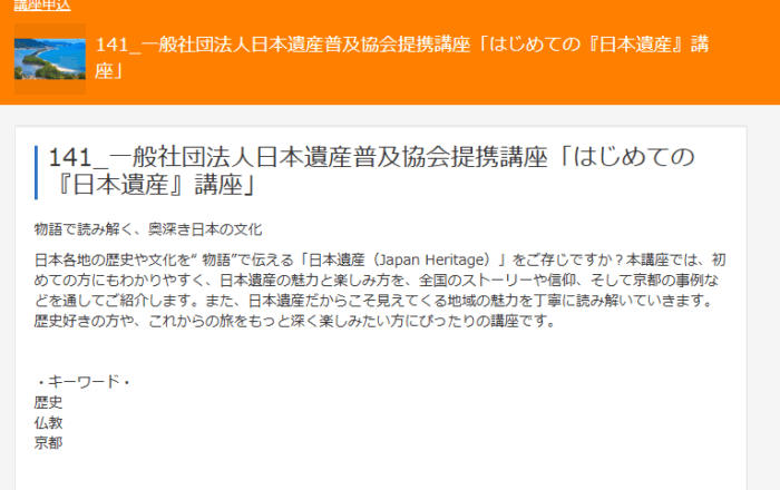 この日本遺産の魅力をやさしく解説する連続講座が、佛教大学オープンラーニングセンターにて開催されます。