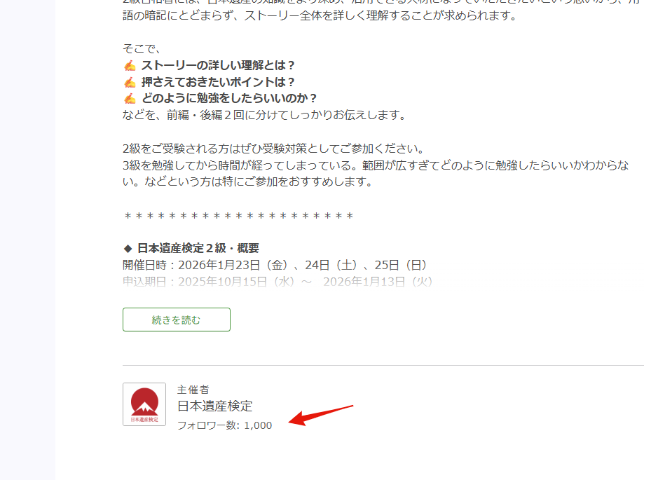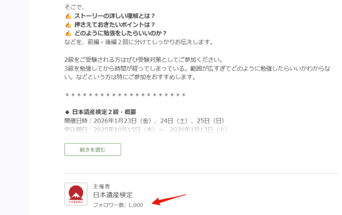 日本遺産普及協会が運営する「日本遺産検定」Peatixページのフォロワー数が、